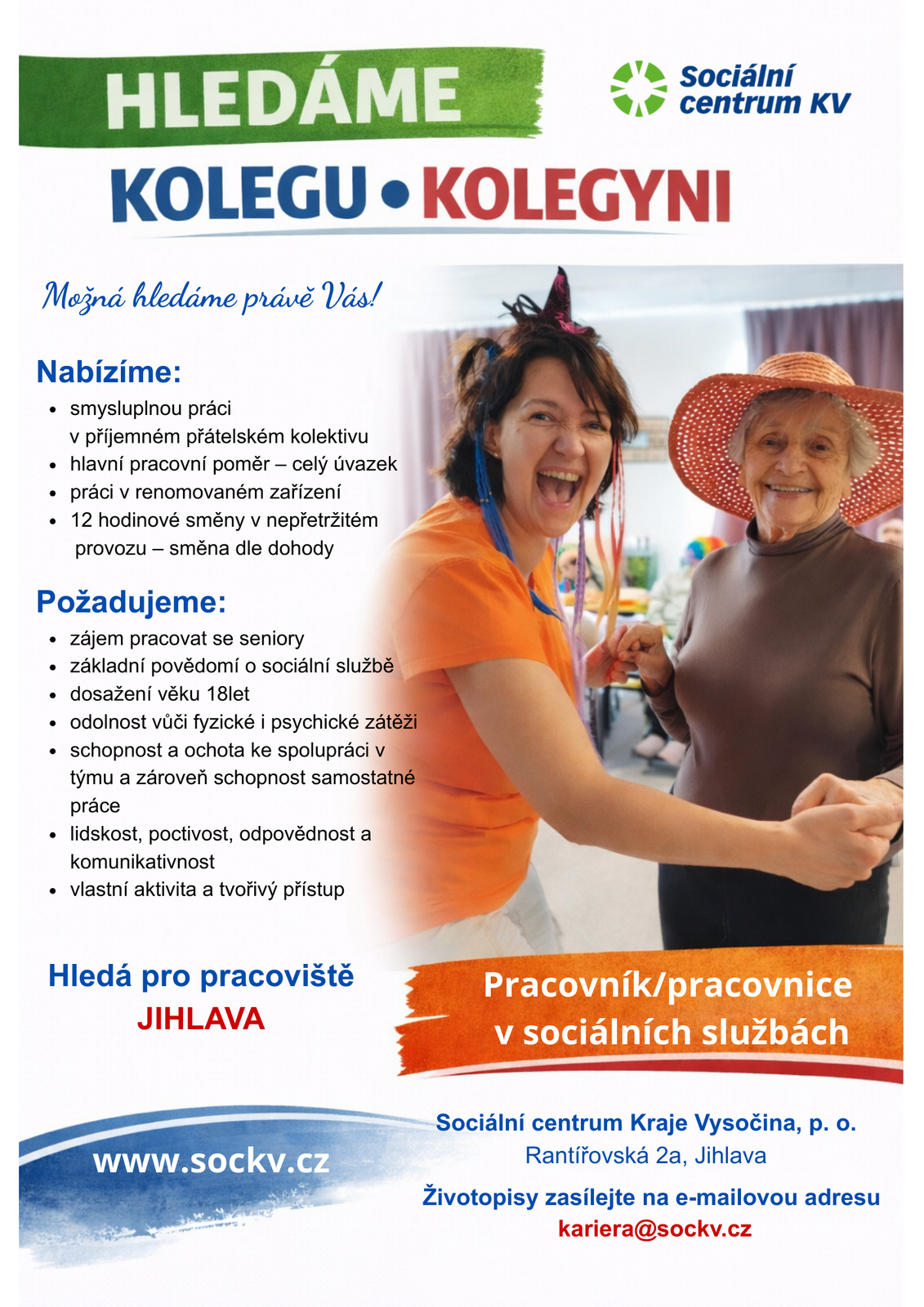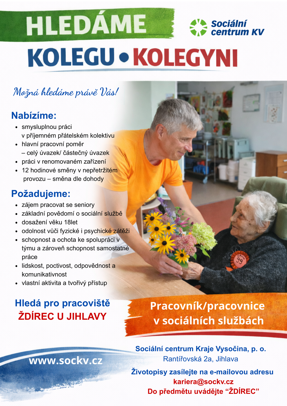 Sociální centrum Kraje Vysočina, p. o., hledá do svého týmu nového kolegu či kolegyni na pozici pracovník/pracovnice v sociálních službách pro pracoviště Jihlava a Ždírec u Jihlavy.