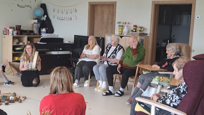 Senioři si užili hudební návštěvu studentů Střední sociální školy Matky Boží Jihlava pod vedením paní Šalamounové a pana Krpálka, a s nadšením se zapojili i do muzikoterapie v MŠ Sluníčko a velikonočního tvoření s dětmi z MŠ Ždírec.