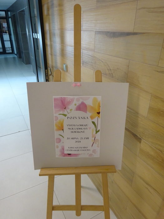Srdečně Vás zveme na výstavu do Sociálního centra Kraje Vysočina p.o. ,Rantířovská ulice, 5908/2a Jihlava. V prostorách kaple se můžete potěšit pohledem na obrazy Mgr. Ladislavy Horákové. Těšíme se na Vaši návštěvu!