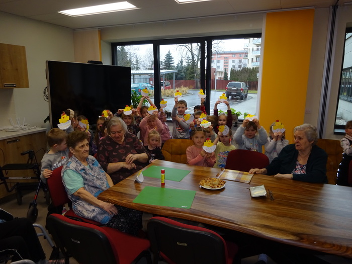 „Dnes nás v centru navštívily dětí z Mateřské školy Kvítek. Společně jsme si vyrobili velikonoční kuřátka.