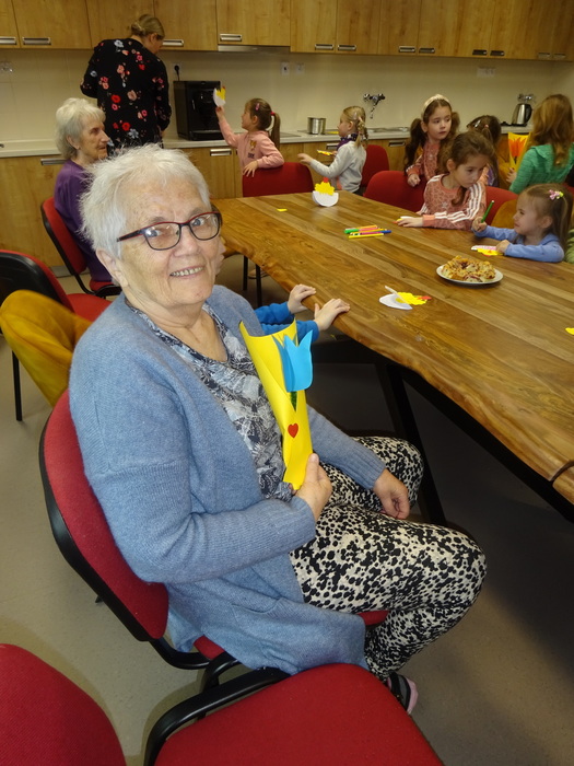 Děti měly pro uživatele připravené papírové kytičky, kterém jim na závěr společného setkání předaly“.